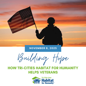 Tri-Cities Area Habitat for Humanity is an ecumenical Christian organization founded in 1989 with a mission to eliminate substandard housing in our community. Since then, we have built over 60 simple, decent, and affordable homes in the Tri-Cities area. We work in partnership with local churches, businesses, and individuals to construct homes that provide stability and opportunity for our Partner Families.